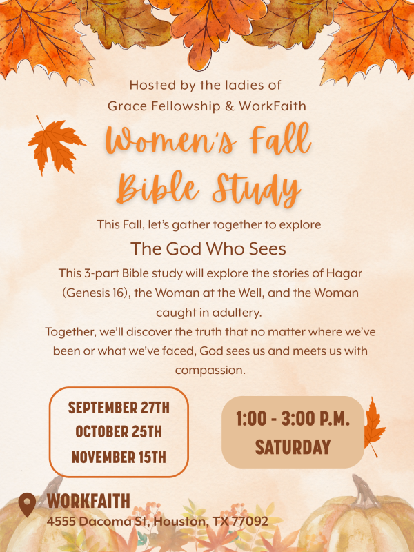 This 3-part Bible study will explore the stories of Hagar (Genesis 16), the Woman at the Well, and the Woman caught in adultery.